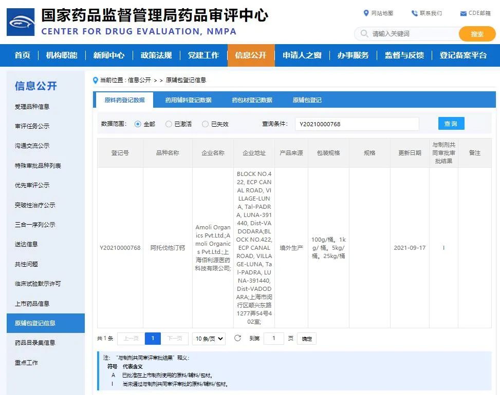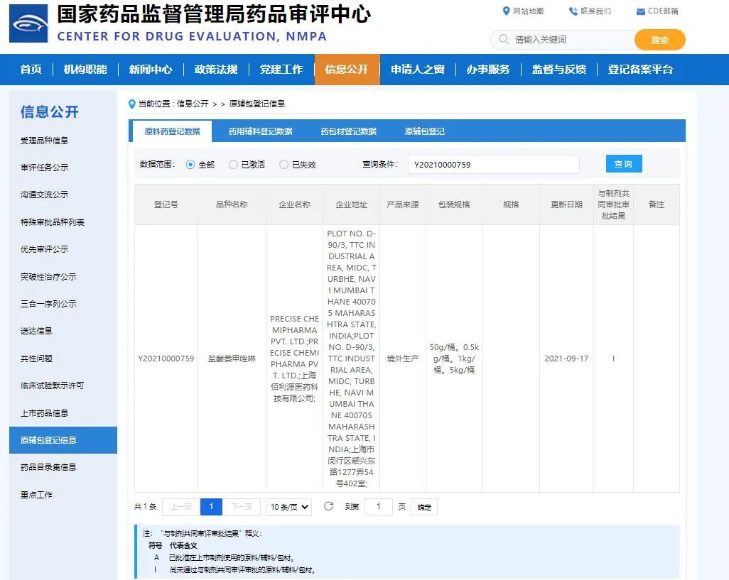 以下为新增待 批准 原料药详情:
